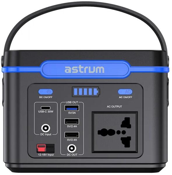 Astrum PS100 24000mAh fekete töltőállomás USB, Type-C, DC, AC220 csatlakozási lehetőségekkel li-polymer cellákkal