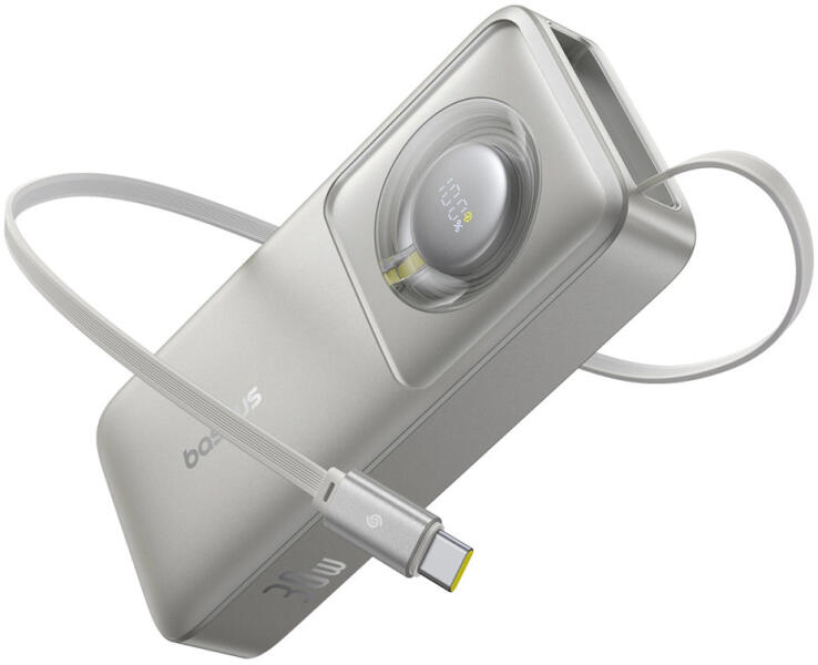 Baseus Free2Pull power bank with a capacity of 10,000 mAh and power up to 30W with a USB-C port and a retractable USB-C cable - gray The Baseus Free2Pull powerbank will easily extend the life of your phone or wireless headphones. Thanks to the built-in, retractable 70 cm USB-C cable, charging while traveling is hassle-free and free from cable tangles. The 10,000 mAh capacity will, for example, charge the iPhone 15 Pro almost twice. The fast port and input/output cable allow charging up to 30W, and advanced security protects against all threats. The ability to charge two devices at the same time makes Baseus Free2Pull the perfect choice for frequent travelers. Specification: