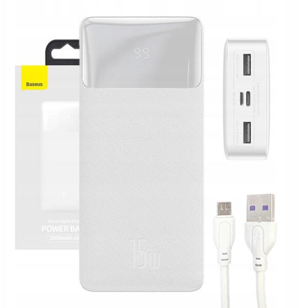 Baseus Powerbank Baseus Bipow 20000 mAh 2x Usb Usb-c microUSB 15W Fehér (PPBD050102)ALLEGRO