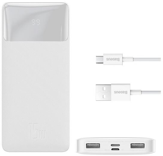 Baseus PPBD050002 Külső Akkumulátor - 10000 mAh, Vezetékes Töltés, Fehér