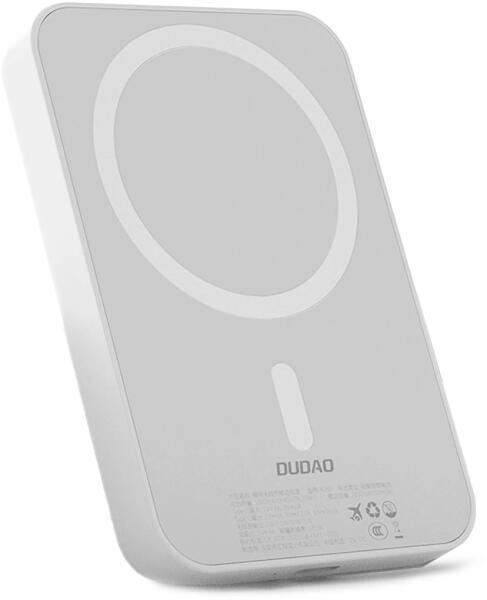 Powerbank Dudao K26 10000mAh 20W USB-A / USB-C / MagSafe - fehér Fedezze fel a kivételes teljesítményt és kényelmet a Dudao K26 Powerbankkal - tökéletes megoldás mindenkinek, akinek megbízható energiaforrásra van szüksége útközben. A 10 000 mAh kapacitással és 20W maximális teljesítménnyel gyorsabban és hatékonyabban töltheti fel eszközeit. A Power Delivery és a Quick Charge protokollok támogatása villámgyors töltést biztosít, a MagSafe kompatibilitás pedig akár 15W-os vezeték nélküli töltést is lehetővé tesz. A két USB-A és USB-C porttal felszerelt powerbank garantálja a sokoldalúságot és a sokoldalúságot. Kompakt, könnyű és stílusos - tökéletes társ a mindennapi használathoz. Specifikáció: