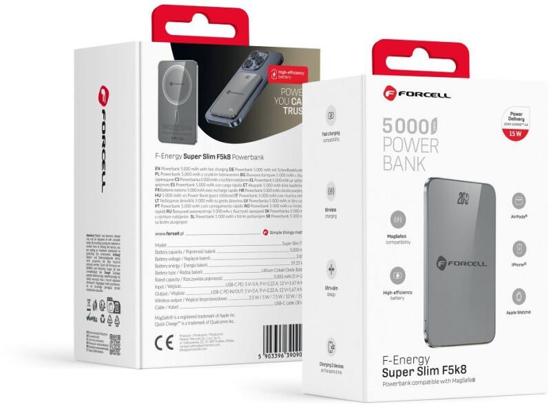 Forcell F-ENERGY F5K8 Super Slim powerbank compatible with MagSafe PD3.0 QC4.0 15W 5000 mAh grey - smartdiszkont