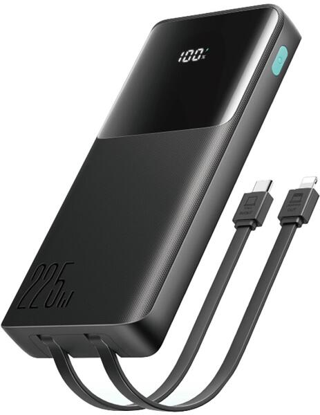 JOYROOM JR-PBF19 külső akkumulátor, 10000 mAh, 22, 5 W, USB/USB-C, USB-C és Lightning kábel, fekete