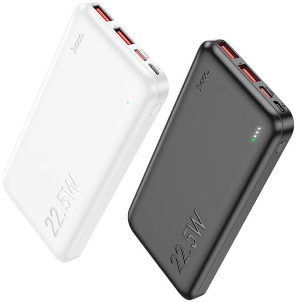 Külső akkumulátor, 10000mAh, két USB-A porttal, MicroUSB és USB-C tápegységgel, Ultra-Thin Design, HOCO J101, fehér