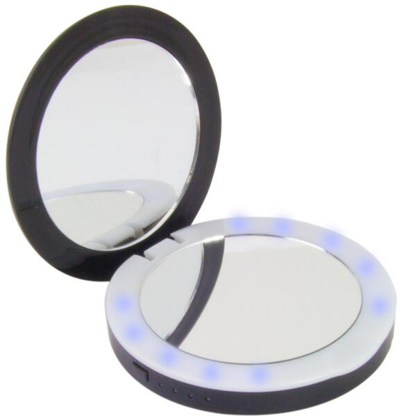 Laptophardware Power Bank 3000mAh - elegáns fekete kivitelben, beépített tükörrel és LED-es háttérvilágítással, gyors töltési funkcióval, kompakt méretben utazáshoz és mindennapi használatra