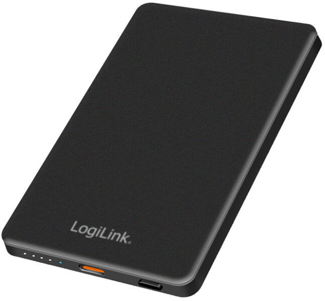 LogiLink Mágneses Power Bank, 5000 MAh, USB-C, PD 15 W, Fekete