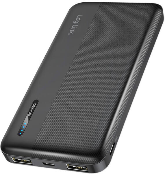 LogiLink Powerbank 10 000 MAh, 2x USB-A, USB-C, Gyorstöltés Funkcióval, Fekete - fizz