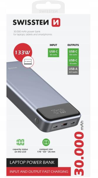 SWISSTEN 22013917 30000 mAh szürke (22013917)ALLEGRO