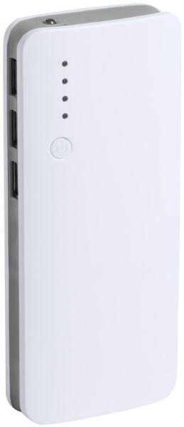 Műanyag USB power bank 3 csatlakozóval és 10000 mAh akkumulátorral. Töltőkábel nélkül szállítjuk.