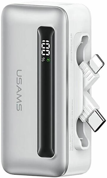 Usams 4K5CD23302 XB Series PlugOn powerbank beépített Type-C/Lightning csatlakozóval 4500mAh 20W PD - ezüst