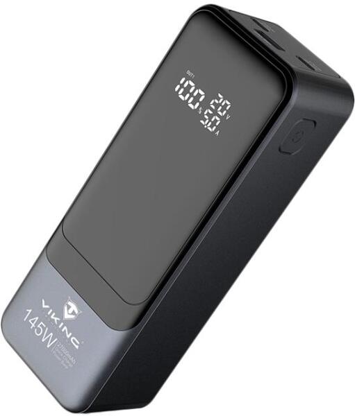 Viking PN-964PD 27000 mAhEz a powerbank egy csúcsminőségű tartalék áramforrás. Fejlett elektronikával van felszerelve az eszközök védelme érdekében. Főbb jellemzők:Maximális teljesítmény 145WQC és PD gyorstöltés támogatásaValódi kapacitás 27000mAh / 3.6V / 97WhNagy hatékonyságú IC technológiaLCD kijelzőVezérlő MCU chipVédő elektronikai elemek3 x kimeneti port!A power bank 3 USB kimeneti portot kínál akár 3 eszköz egyidejű töltéséhez. Biztonság és kompatibilitásA power bank megvédi készülékét és magát a túlfeszültségtől és a túlmelegedéstől. Kompatibilis a piacon lévő elektronikai eszközök 99,9%-ával. Gyors és intelligens töltésTámogatja a PD (Power Delivery) és a QC (Quick Charge) gyors töltést. A beépített intelligens elektronikus chip (MCU) optimalizálja a paramétereket a hatékony töltés érdekében. Intelligens kimeneti teljesítménymegosztásUSB-C1USB-C2: 100W45WUSB-C1USB-A: 100W45WUSB-C2USB-A: 15WUSB-C1USB-C2USB-A: 100W15W15W15WMűszaki specifikációk:Modell: PN-964PD 27000mAhAkkumulátor kapacitás: 3.6V / 27000mAh / 97.2WhAkkumulátor: Li-ion polimerMéret: 15.2 x 5.4 x 4.2 cmSúly: 560gUSB-A kimenet: 10V/2,25A ; 5V/9V/12V/15V/3A (max. 60W)USB-C 1 kimenet/bemenet: 5V/9V/12V/15V/3A ; 20V/5A (100W max. )USB-C 1 kimenet/bemenet: 5V/9V/12V/15V/3A ; 20V/5A (100W max. )Töltési idő: QC/PD támogatással kb. 4 óra. Töltések minimális száma: 500xTanúsítás: CE, FC, Rohs